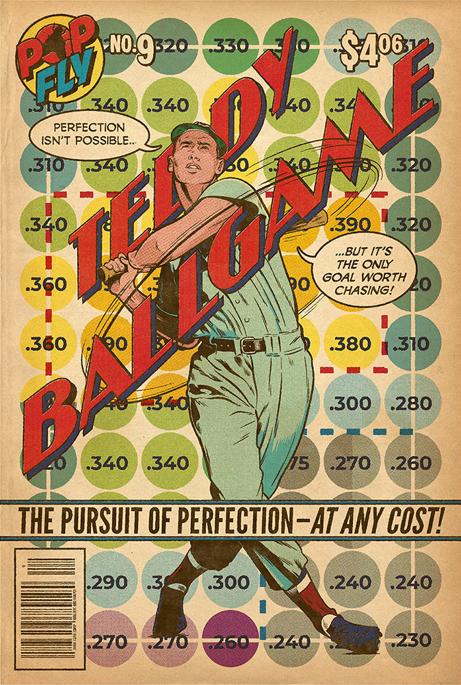 A vibrant, comic-book-era homage that blends baseball’s divine geometry with Williams’ relentless pursuit of the impossible.